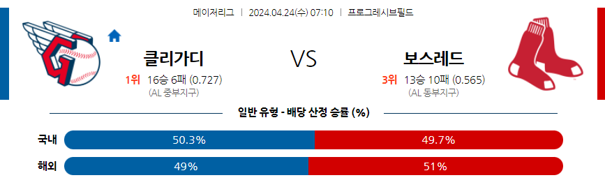 [킹콩티비] 04월 24일 클리블랜드 vs 보스턴 MLB 생중계, 스포츠분석,스포츠중계