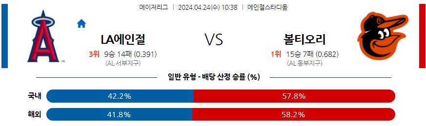 [킹콩티비] 04월 24일 LA에인절스 vs 볼티모어 MLB 생중계, 스포츠분석,스포츠중계
