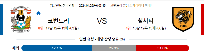 [킹콩티비] 04월 25일 코번트리 vs 헐시티 챔피언쉽 생중계, 스포츠분석,스포츠중계