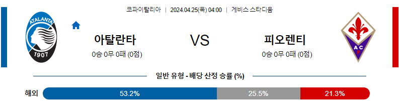 [킹콩티비] 04월 25일 아탈란타 vs 피오렌티나 코파이탈리아 생중계, 스포츠분석,스포츠중계