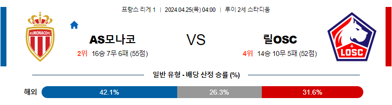 [킹콩티비] 04월 25일 AS모나코 vs 릴 리그1 생중계, 스포츠분석,스포츠중계