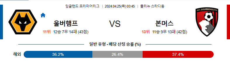 울브스 본머스 04월25일