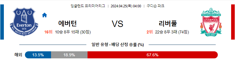 공격 전개나 기본적인 중원에서 풀어가는 특성에서는 리버풀이 우위를 잡을 수 있을 것. 다만 구디슨파크에서의 에버튼 저력과 함꼐, 라인을 내리고 간격을 좁혀버리면 리버풀도 상당히 고전할 가능성이 높다. 리버풀의 현재 공격진 폼이나 구성이 압도적이라고 하기에는 하락세라는 점은 명확할 듯.