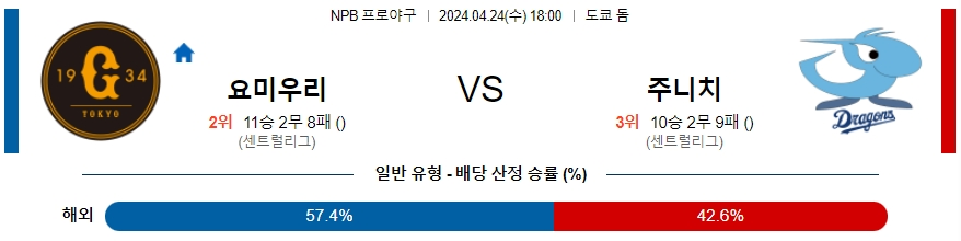 [킹콩티비] 04월 24일 요미우리 vs 주니치 NPB 생중계, 스포츠분석,스포츠중계