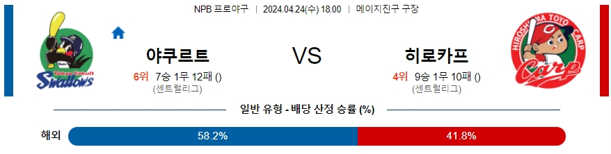 [킹콩티비] 04월 24일 야쿠르트 vs 히로시마 NPB 생중계, 스포츠분석,스포츠중계
