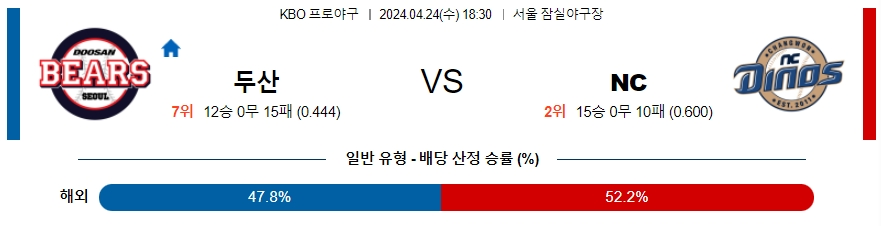 [킹콩티비] 04월 24일 두산 vs NC KBO 생중계, 스포츠분석,스포츠중계