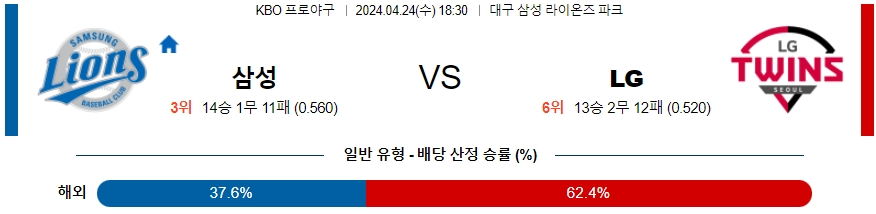 [킹콩티비] 04월 24일 삼성 vs LG KBO 생중계, 스포츠분석,스포츠중계