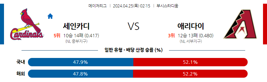 [킹콩티비] 04월 25일 St.루이스 vs 애리조나 MLB 생중계, 스포츠분석,스포츠중계