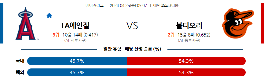 [킹콩티비] 04월 25일 LA에인절스 vs 볼티모어 MLB 생중계, 스포츠분석,스포츠중계