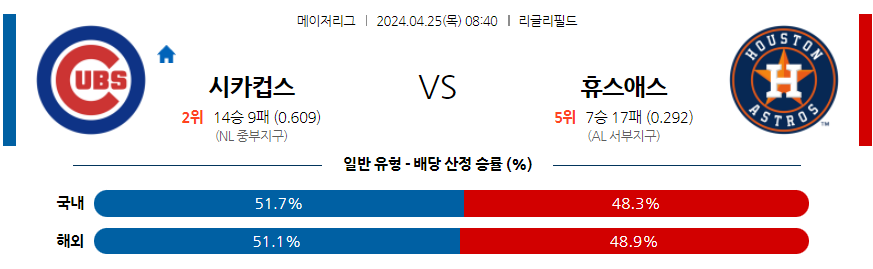 [킹콩티비] 04월 25일 시카고C vs 휴스턴 MLB 생중계, 스포츠분석,스포츠중계