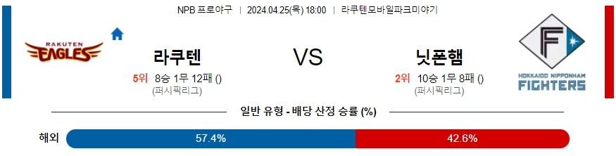 [킹콩티비] 04월 25일 라쿠텐 vs 닛폰햄 NPB 생중계, 스포츠분석,스포츠중계