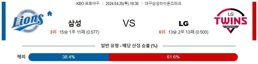 [킹콩티비] 04월 25일 삼성 vs LG KBO 생중계, 스포츠분석,스포츠중계