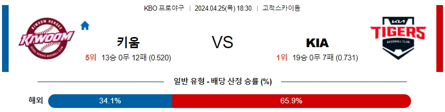 [킹콩티비] 04월 25일 키움 vs KIA KBO 생중계, 스포츠분석,스포츠중계