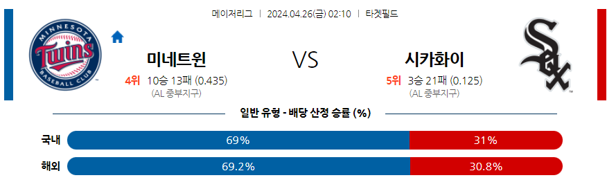 미네소타 시카고W 야구분석