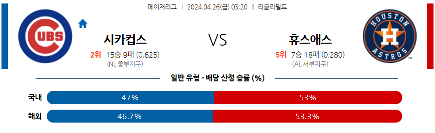 시카고C 휴스턴 야구분석