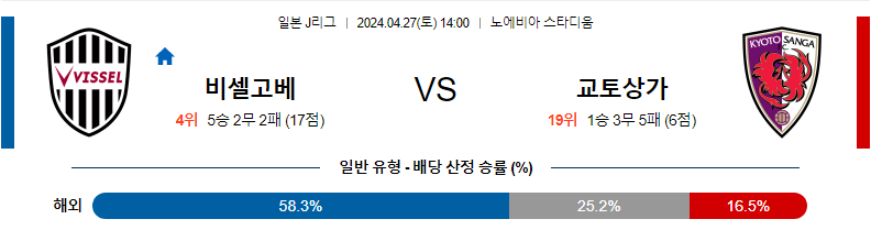 [킹콩티비] 04월 27일 비셀고베 vs 교토 J리그 생중계, 스포츠분석,스포츠중계