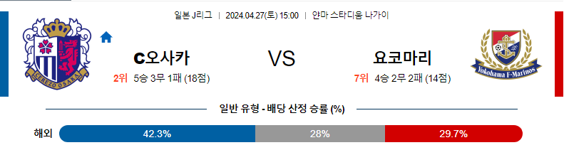 [킹콩티비] 04월 27일 세레소오사카 vs 요코하마마리노스 J리그 생중계, 스포츠분석,스포츠중계