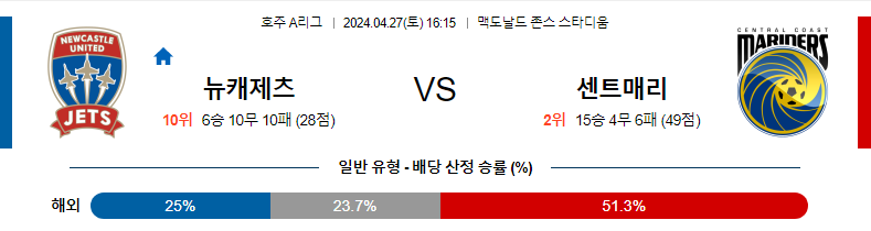 [일반 승/무/패] 센트럴코스트 승 (추천 o)