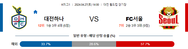 [킹콩티비] 04월 27일 대전 vs 서울 K리그 생중계, 스포츠분석,스포츠중계