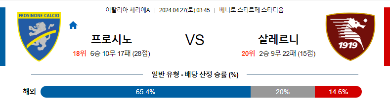 [킹콩티비] 04월 27일 프로시노네 vs 살레르니타나 세리에A 생중계, 스포츠분석,스포츠중계