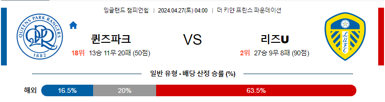 [킹콩티비] 04월 27일 퀸즈파크레인저스 vs 리즈 챔피언쉽 생중계, 스포츠분석,스포츠중계