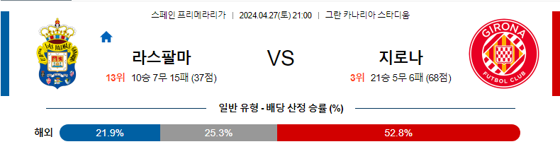 [킹콩티비] 04월 27일 라스팔마스 vs 지로나 라리가 생중계, 스포츠분석,스포츠중계
