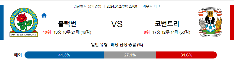 [킹콩티비] 04월 27일 블랙번 vs 코벤트리 챔피언쉽 생중계, 스포츠분석,스포츠중계