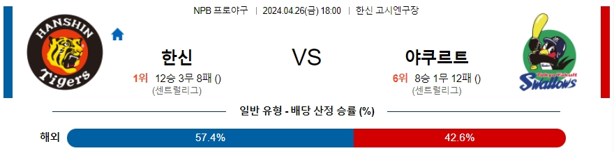 [킹콩티비] 04월 26일 한신 vs 야쿠르트 NPB 생중계, 스포츠분석,스포츠중계