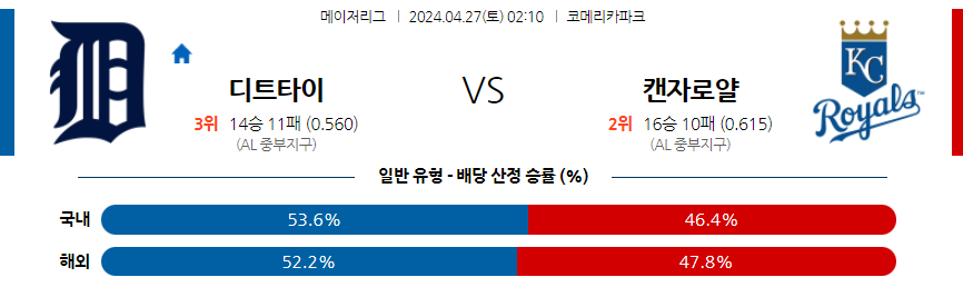 [킹콩티비] 04월 27일 디트로이트 vs 캔자스시티 MLB 생중계, 스포츠분석,스포츠중계