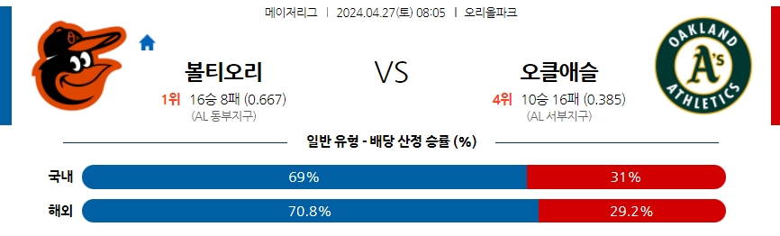 [킹콩티비] 04월 27일 볼티모어 vs 오클랜드 MLB 생중계, 스포츠분석,스포츠중계
