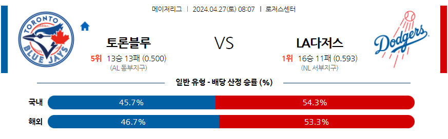토론토 LA다저스 04월27일