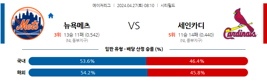 [킹콩티비] 04월 27일 뉴욕메츠 vs St.루이스 MLB 생중계, 스포츠분석,스포츠중계