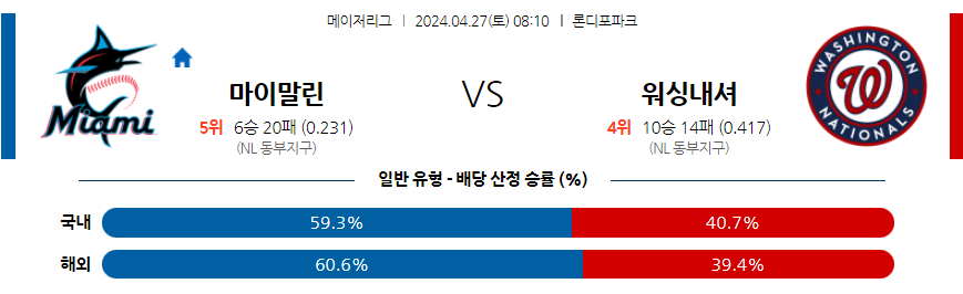 [킹콩티비] 04월 27일 마이애미 vs 워싱턴 MLB 생중계, 스포츠분석,스포츠중계