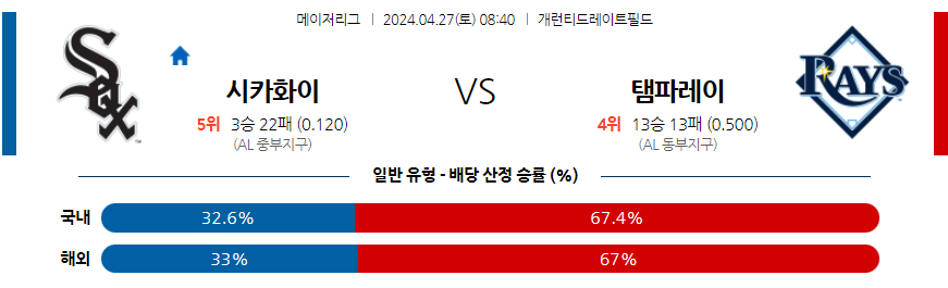 [킹콩티비] 04월 27일 시카고W vs 탬파베이 MLB 생중계, 스포츠분석,스포츠중계