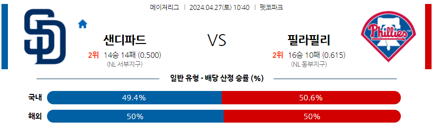샌디에이고 필라델피아 04월27일