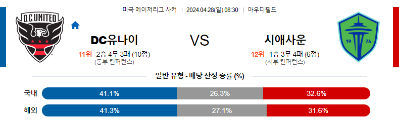 [킹콩티비] 04월 28일 DC유나이티드 vs 시애틀 MLS 생중계, 스포츠분석,스포츠중계