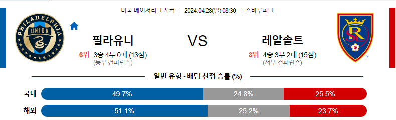 [킹콩티비] 04월 28일 필라델피아 vs 솔트레이크 MLS 생중계, 스포츠분석,스포츠중계