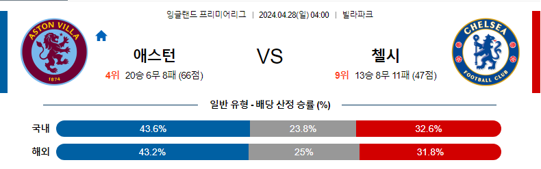 [킹콩티비] 04월 28일 애스턴빌라 vs 첼시 EPL 생중계, 스포츠분석,스포츠중계