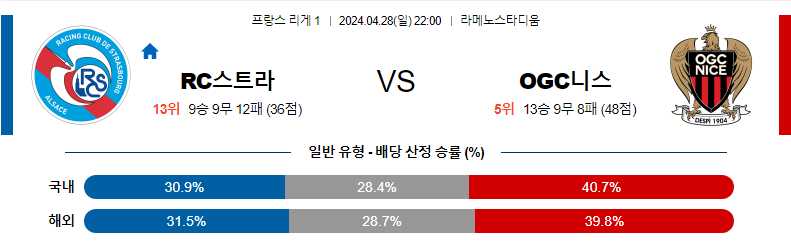 [킹콩티비] 04월 28일 스트라스부르 vs 니스 리그1 생중계, 스포츠분석,스포츠중계