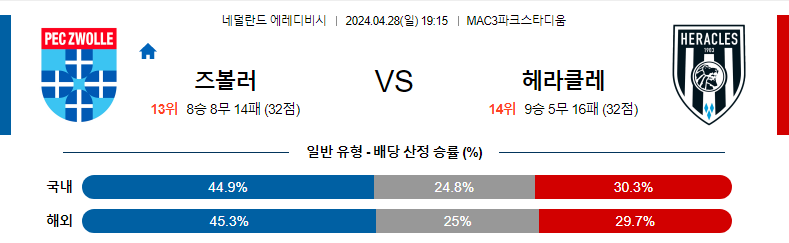[킹콩티비] 04월 28일 즈볼레 vs 헤라클레스 에레디비시 생중계, 스포츠분석,스포츠중계