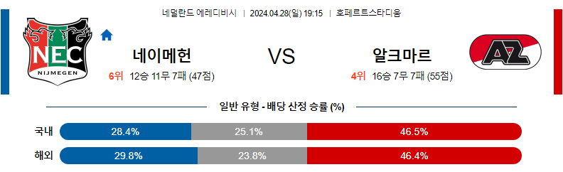[킹콩티비] 04월 28일 네이메헌 vs 알크마르 에레디비시 생중계, 스포츠분석,스포츠중계