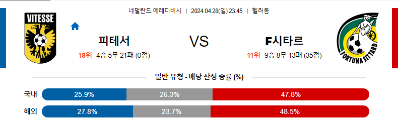 [킹콩티비] 04월 28일 비테세 vs 시타르트 에레디비시 생중계, 스포츠분석,스포츠중계