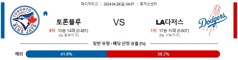 토론토 다저스 04월28일