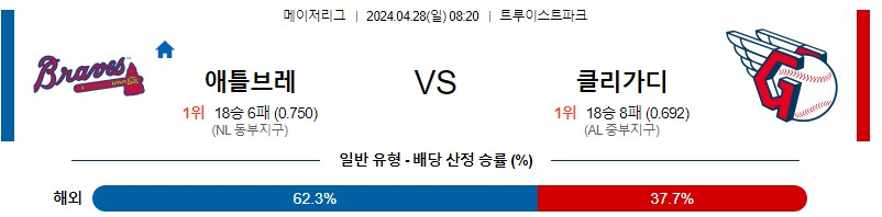 [킹콩티비] 04월 28일 애틀랜타 vs 클리블랜드 MLB 생중계, 스포츠분석,스포츠중계