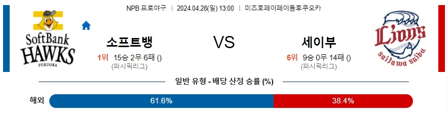 [킹콩티비] 04월 28일 소프트뱅크 vs 세이부 NPB 생중계, 스포츠분석,스포츠중계