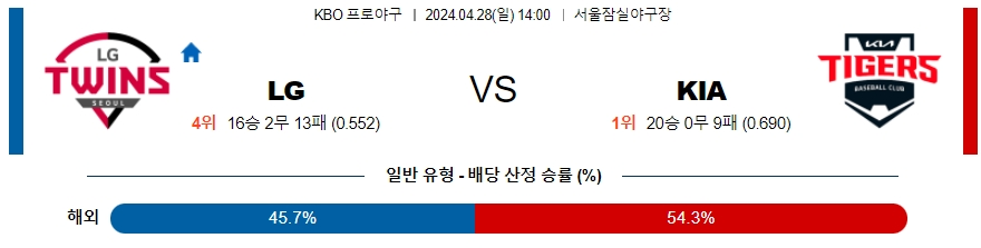 [킹콩티비] 04월 28일 엘지 vs 기아 KBO 생중계, 스포츠분석,스포츠중계
