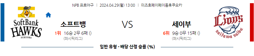 [킹콩티비] 04월 29일 소프트뱅크 vs 세이부 NPB 생중계, 스포츠분석,스포츠중계