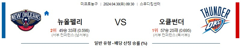[킹콩티비] 04월 30일 뉴올리언스 vs 오클라호마 NBA 생중계, 스포츠분석,스포츠중계