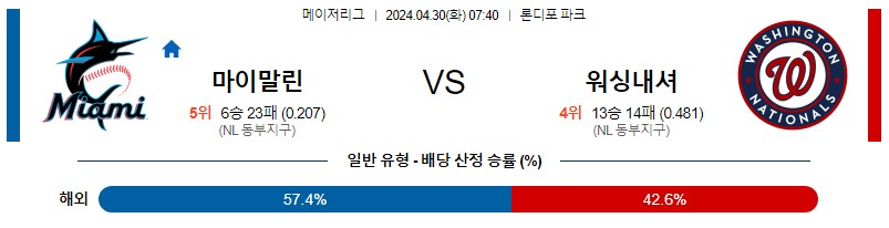 [킹콩티비] 04월 30일 마이애미 vs 워싱턴 MLB 생중계, 스포츠분석,스포츠중계
