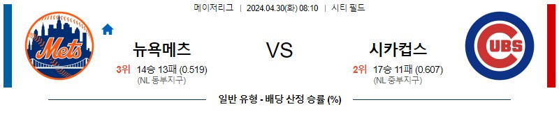 [킹콩티비] 04월 30일 메츠 vs 컵스 MLB 생중계, 스포츠분석,스포츠중계